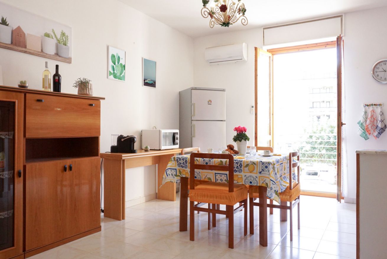 La casa è a soli pochi passi dal lungomare e dalle spiagge principali che costeggiano la città di Alghero e a pochi minuti a piedi dal centro della città. L’ appartamento di circa 70 mq, molto luminoso per la sua doppia esposizione, è cosi composto, ingresso su zona living con angolo cottura accessoriato, questa zona della casa è molto luminosa grazie alla porta finestra dove si può accedere ad un piccolo balcone che si affaccia proprio sulla via principale. Nella zona notte troviamo invece due camere da letto matrimoniali spaziose dotate di zanzariere, nella camera padronale sono presenti letto matrimoniale e letto singolo. Infine il bagno recentemente ristrutturato con tutti i comfort, ampia doccia e lavatrice. La casa è inoltre dotata di aria condizionata c/f con uno split presente nella zona pranzo.