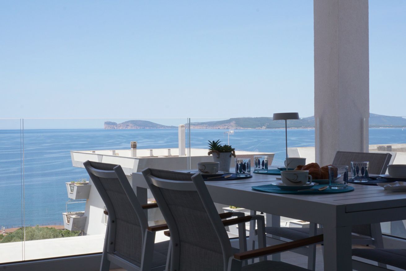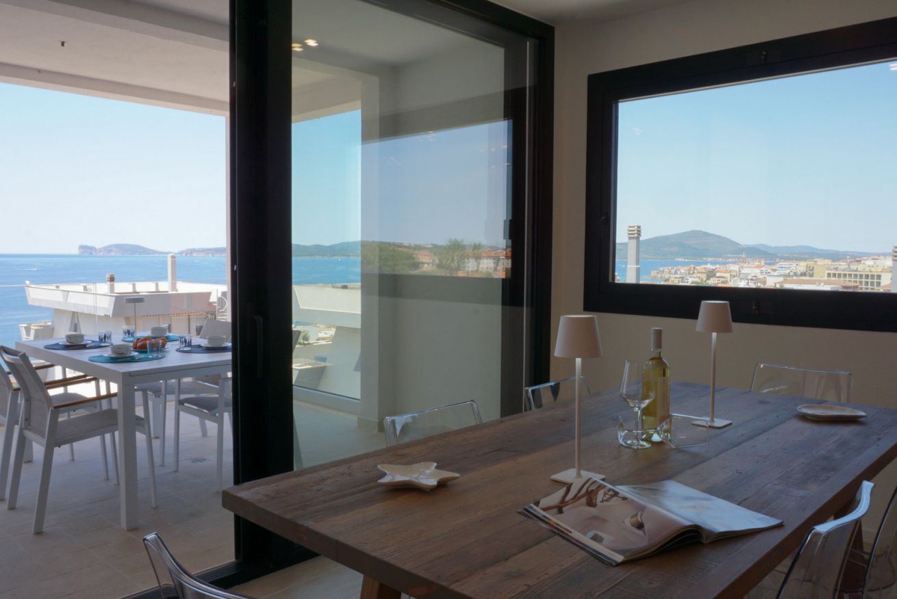 In una delle zone più tranquille di Alghero, dal quale si può ammirare un panorama mozzafiato, si trova Postcard, un magnifico appartamento all'ultimo piano di un palazzo di recente costruzione.